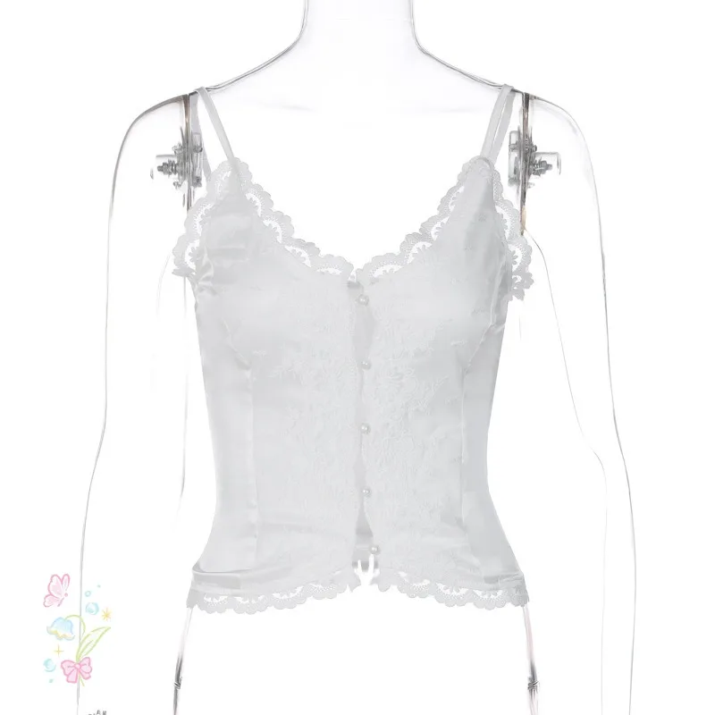 Ladies Summer Lace New Fashion Women Sleeveless Backless See Through Crop Top Female Vacation Club Streetwear Y2K Tees 2025